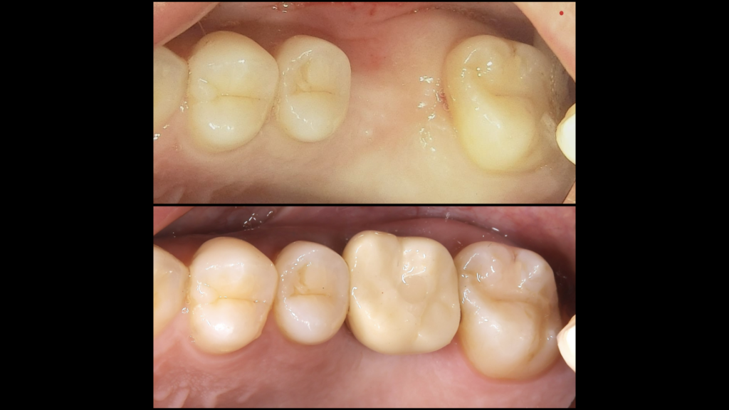 噛み合わせによって割れてしまった上の奥歯にインプラント処置を行いました。